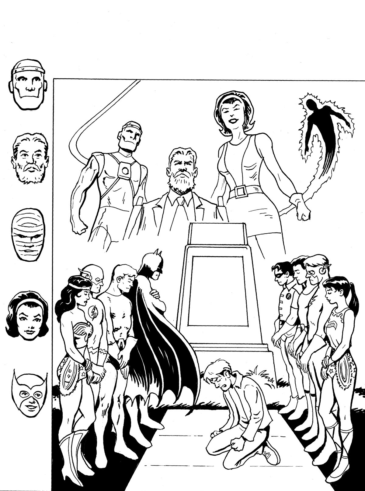 Based on the original Nick Cardy cover for Justice League of America 100 featuring Seven Soldiers of Victory and the Justice Society. Here they are replaced by the Doom Patrol and Teen Titans.