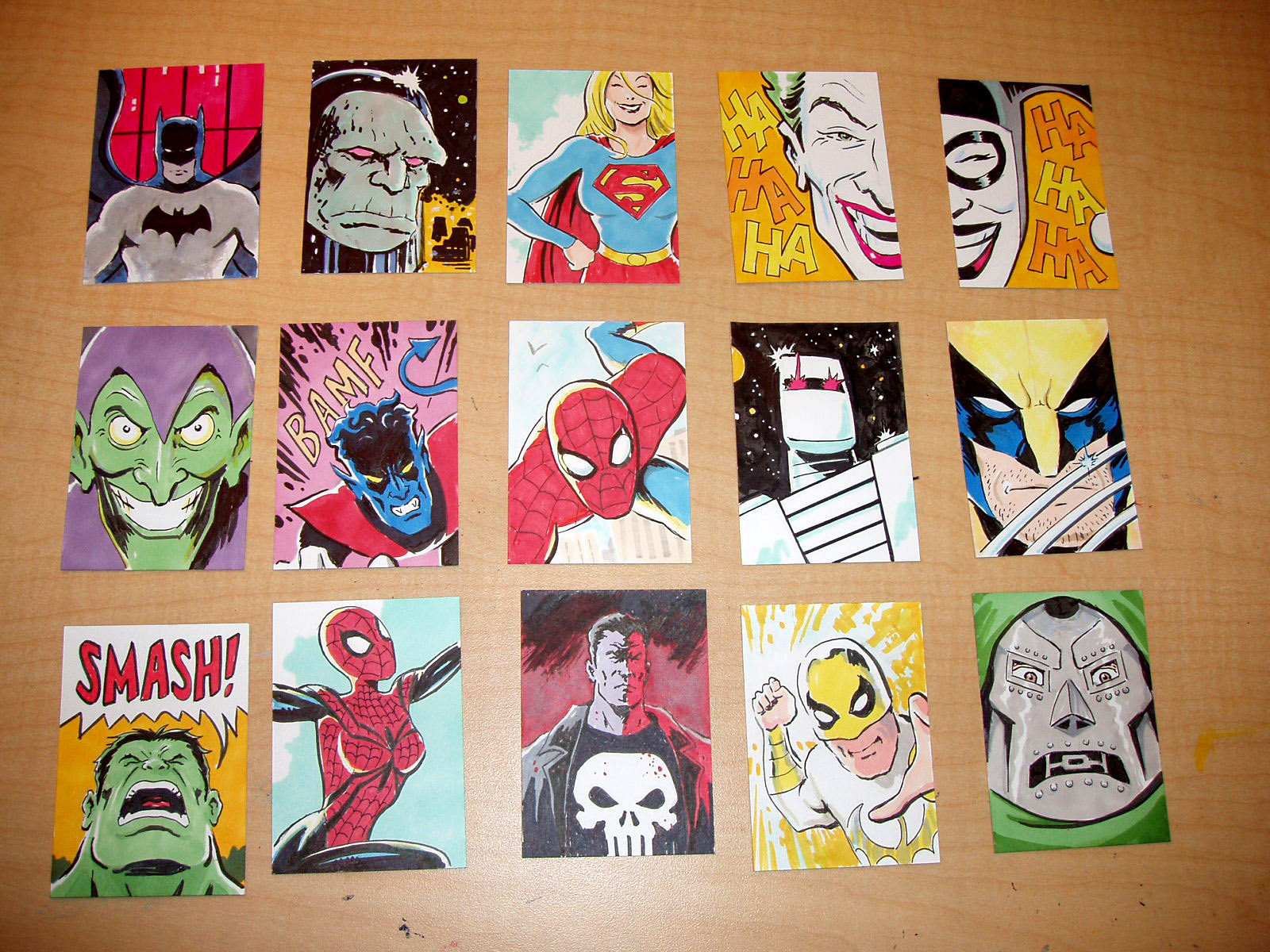 A private commission for collector Bert Simmons. Based on the Carmine Infantino cover for Flash 172. Swapping the Flash characters/logo for the world of Gotham City. Hand drawn logo and characters, Batman, Catwoman, Riddler, Joker, Ras As Ghul, Penguin, TwoFace